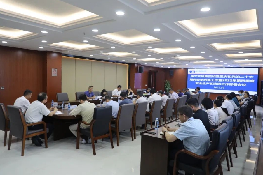 為認(rèn)真貫徹落實(shí)習(xí)近平總書記關(guān)于安全生產(chǎn)重要論述,傳達(dá)學(xué)習(xí)中央、自治區(qū)、南寧市安全生產(chǎn)相關(guān)會(huì)議精神,加強(qiáng)國慶和黨的二十大期間安全防范工作,部署好第四季度安全生產(chǎn)工作,9月29日,集團(tuán)公司召開加強(qiáng)國慶和黨的二十大期間安全防范工作暨2022年第四季度安全生產(chǎn)和消防工作部署會(huì)議。集團(tuán)公司領(lǐng)導(dǎo)楊漣、周圣果、農(nóng)明姬、馬衛(wèi)然、秦勝友,集團(tuán)公司總法律顧問、總經(jīng)理助理,以及各子公司主要領(lǐng)導(dǎo)、相關(guān)部門負(fù)責(zé)人參加會(huì)議。