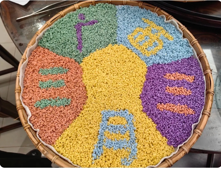 小朋友們制作出創(chuàng)意“五色糯米飯”