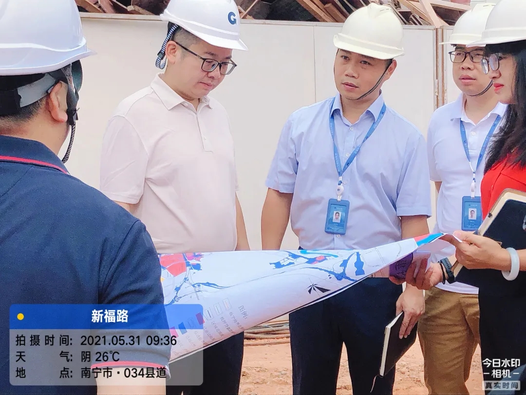 5月31日,邕寧區(qū)區(qū)長(zhǎng)何翔一行到牛灣港產(chǎn)業(yè)園片區(qū)的橙山路、巧紅路、新巧路項(xiàng)目開(kāi)展調(diào)研工作,交資公司董事長(zhǎng)李發(fā)奕陪同調(diào)研。